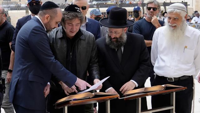 El presidente Javier Milei arribó este domingo a Israel, en visita oficial, la tercera desde que asumió la Presidencia. Pasó por el Muro de los Lamentos.