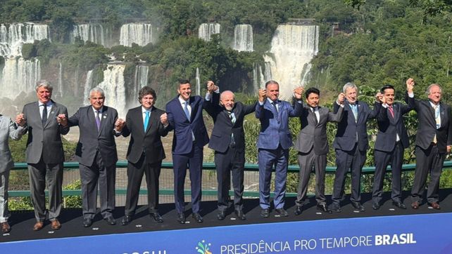 El presidente Javier Milei participa este sábado de la cumbre de mandatarios del Mercosur en la ciudad brasileña de Foz de Iguazú, luego de formar parte de la tradicional "foto de familia" con vista a las Cataratas.