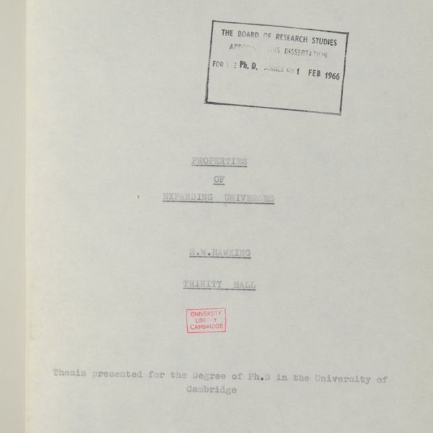 Este lunes, el sitio de internet de la Universidad de Cambridge liberó la tesis doctoral de Hawking, titulada "Las propiedades de un Universo en expansión" y que escribió en 1965 cuando apenas tenía 24 años.