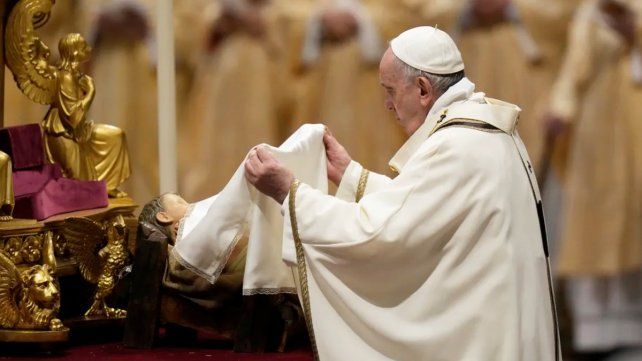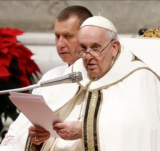 "En el pesebre del rechazo y de la incomodidad, Dios se acomoda, llega allí, porque allí está el problema de la humanidad, la indiferencia generada por la prisa voraz de poseer y consumir", agregó luego Jorge Bergoglio, de 86 años, quien se mostró notablemente recuperado de la lesión en la rodilla que el año pasado le había impedido encabezar algunas celebraciones.