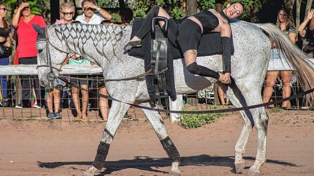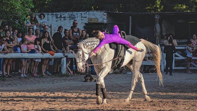 El volteo es una disciplina que fue creciendo de a poco en El Nogal y lo hizo fundamentalmente de la mano y el talento de Anita. La amazona fue la encargada de contar de qué se trata esta particular disciplina que se da arriba del caballo. “El volteo es una disciplina donde el caballo va en movimiento en un círculo, al paso,al trote o al galope que sería los aires del caballo. Allí los chicos y adultos realizan acrobacias sobre el caballo. Es hacer gimnasia deportiva sobre el caballo. Es una actividad entretenida y es un verdadero show. En la muestra tuvimos el suficiente público presente así que todo estuvo muy lindo”.
