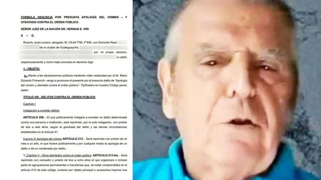 Un abogado de Gualeguaychú presentó, ante el juez federal Hernán Viri, una denuncia contra Mario Firmenich por “Apología del crimen y atentado contra el orden público”, tipificados en el Código Penal.