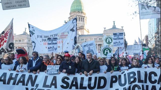 "Movilizamos al Congreso para demandar que se rechacen los vetos a la Ley de Emergencia Pediátrica y a la Ley de Financiamiento Universitario. Frente a la mentira, agresión y difamación del Gobierno, los estatales tenemos la certeza de que nuestros reclamos son absolutamente justos y razonables. Desde que asumió Milei, las partidas presupuestarias de los hospitales cayeron entre un 30 y un 40 por ciento mientras que se incrementaron los gastos en inteligencia. Están destruyendo el sistema sanitario público. Esta política no la podemos tolerar más", expresó y acotó que el miércoles solo se van a garantizar guardias mínimas.