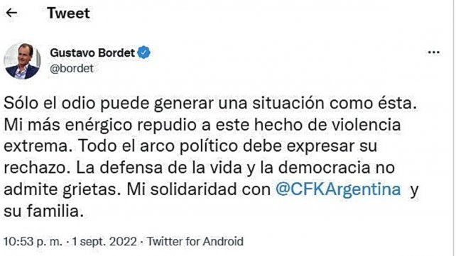 LEER MÁS: Dirigentes políticos entrerrianos se expresaron en redes por el ataque a Cristina Fernández