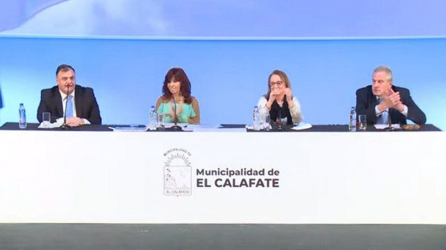 Antes e Cristina hablaron el ministro Perczyk; el intendente de El Calafate, Javier Belloni y la gobernadora Alicia Kirchner. Se espera que después del acto la Vicepresidenta también brinde un saludo a la militancia que se encuentra afuera del lugar.