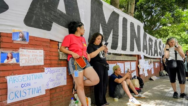 Decenas de personas se acercaron con carteles que manifestaban "Cristina siempre con vos", "Siempre con Cristina", Fuerza Cristina", "Argentina con Cristina", "Te queremos mucho".