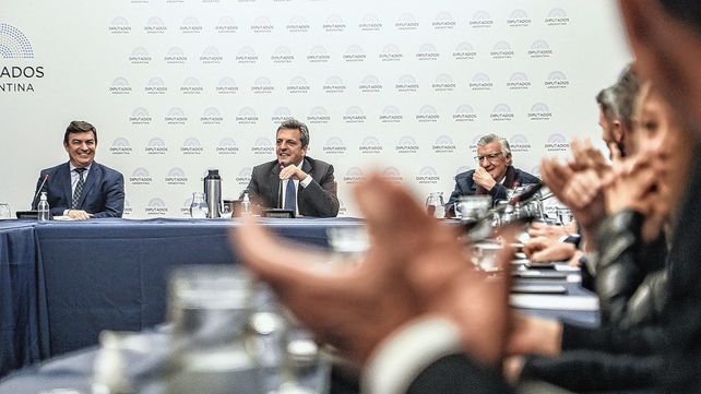 La bancada de diputados del FDT -conducida por Germán Martínez- se reunió al mediodía para ratificar la postulación de la actual vicepresidenta del bloque oficialista y, en ese marco, se sumó Massa para despedirse de sus pares.