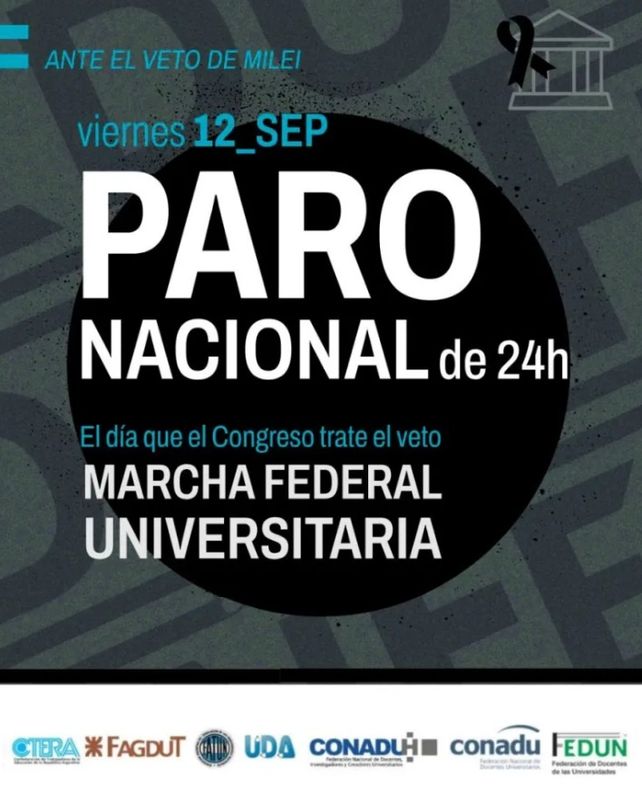 La medida de fuerza de 24 horas fue convocada por FEDUN, CTERA, FAGUDT, CONADU, CONADU histórica, FATUN y UDA, en rechazo de la iniciativa que lleva la firma del mandatario y se conoció este miércoles. En ese sentido, la oposición estudia convocar a una sesión especial el próximo miércoles para derribar el proyecto.