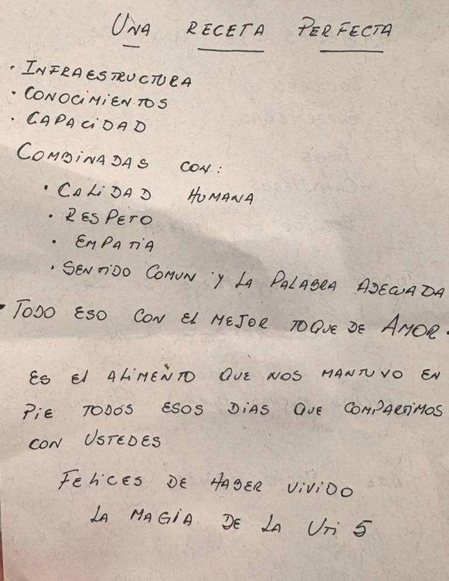 Y continúa: "Todo eso es lo que nos mantuvo en pie todos esos días que compartimos con ustedes. Felices de haber vivido la magia de la UTI5".