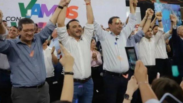Al búnker de festejo se acercaron Alfredo Cornejo (Mendoza) y Carlos Sadir (Jujuy), entre otros dirigentes de peso de la Unión Cívica Radical. También participaron referentes locales como el vicegobernador Pedro Braillard Poccard, quien integró la fórmula con Juan Pablo Valdés.