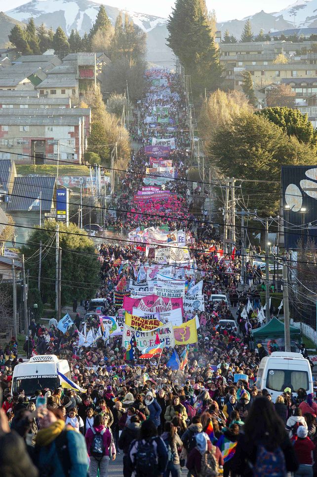 A lo largo de 30 cuadras, miles de personas marcharon en la ciudad rionegrina de San Carlos de Bariloche en el segundo día del Encuentro Plurinacional de Mujeres, Lesbianas, Travestis, Trans, Bisexuales, Intersex y No Binaries, en un evento marcado por el activismo resumido en la consigna "ni un paso atrás" ante al avance de la ultraderecha en al país.