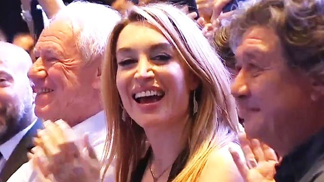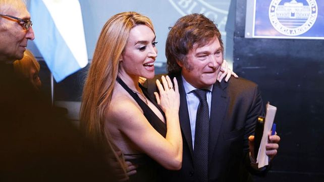 La flamante primera dama acompañó al libertario sobre el escenario.