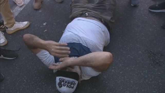 En un momento, las imágenes de la televisión mostraron al dirigente Eduardo Billiboni tendido en el piso, en medio de los efectivos. "Estábamos sentados para mostrar que era pacífica la protesta. Sin embargo, nos golpearon, nos arrastraron. A mí me pegaron varias patadas en la espalda y no podía respirar", expresó Belliboni.