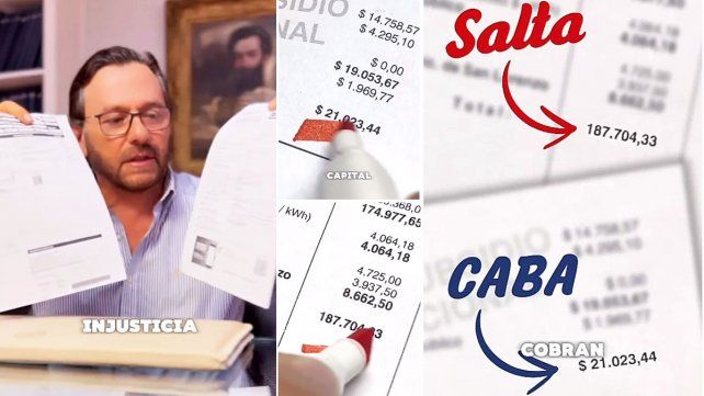 Fibrón en mano, subrayó los valores de cada uno de los recibos. El de Capital Federal por 21.023,04 pesos y otro de Salta por 187.704,33 pesos sobre el servicio prestado a usuarios de categorías idénticas. “Miren lo que cobran en Salta y miren lo que cobran en Capital Federal”, bramó.