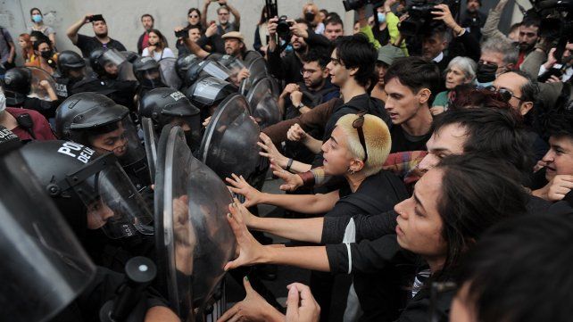 Los enfrentamientos cuerpo a cuerpo entre las fuerzas policiales locales y medio centenar de manifestantes se desarrollaron a raíz del corte total de la calle Lima, que bordea a la 9 de Julio, en un operativo que incluyó la detención de algunas personas.