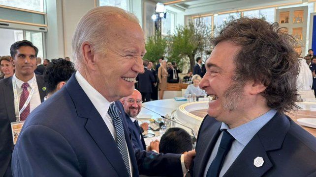El presidente Javier Milei participó este viernes de la cumbre internacional en Italia. Se mostró cercano a la anfitriona Meloni y saludó a Biden y el Papa.
