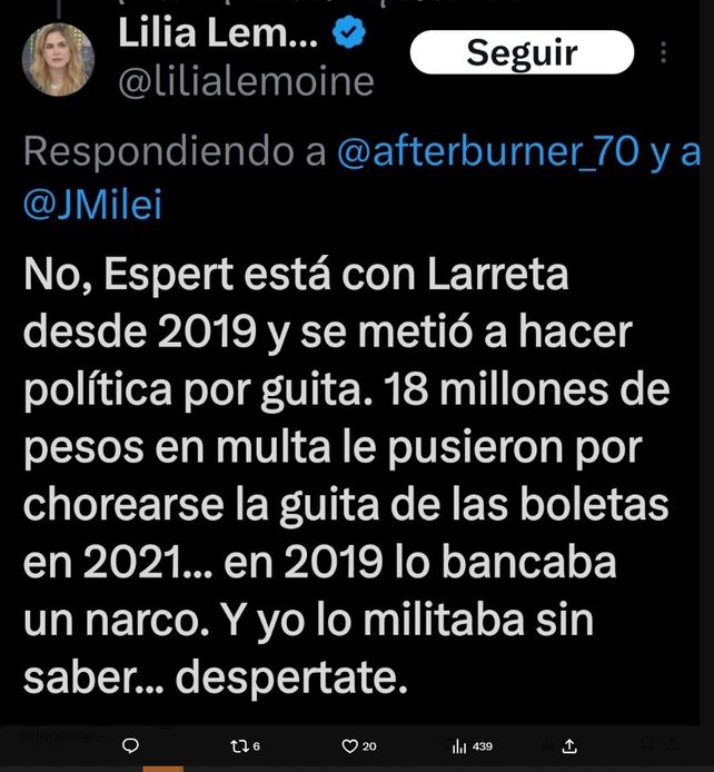 Lilia Lemoine vinculaba a Espert con narcos, antes de que formara parte del gobierno libertario.