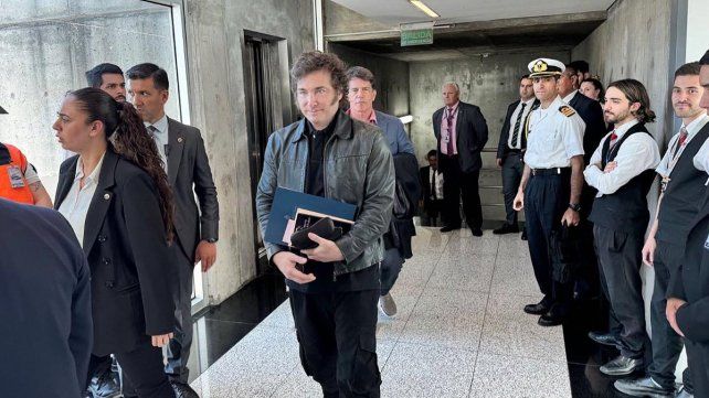 Milei viajó acompañado por la secretaria general de la Presidencia, Karina Milei; el jefe de Gabinete, Nicolás Posse; y los ministros de Relaciones Exteriores, Comercio Internacional y Culto, Diana Mondino; y de Economía, Luis Caputo.