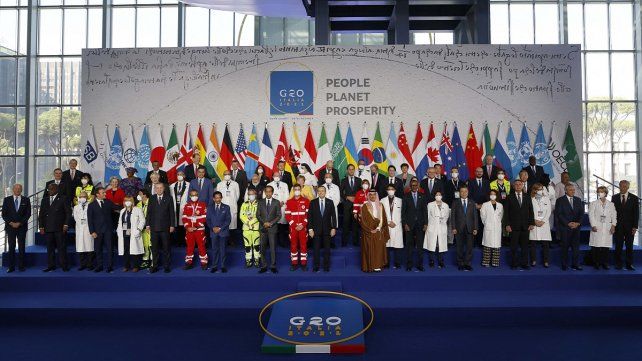 Los jefes de Estado y de Gobierno que participan este sábado y domingo de la cumbre de líderes del G20 en Roma, entre ellos el argentino Alberto Fernández, se sacaron la tradicional "foto de familia", en la que la pandemia de coronavirus estuvo presente por la distancia social y la presencia de los denominados "héroes" en la lucha contra la Covid-19.