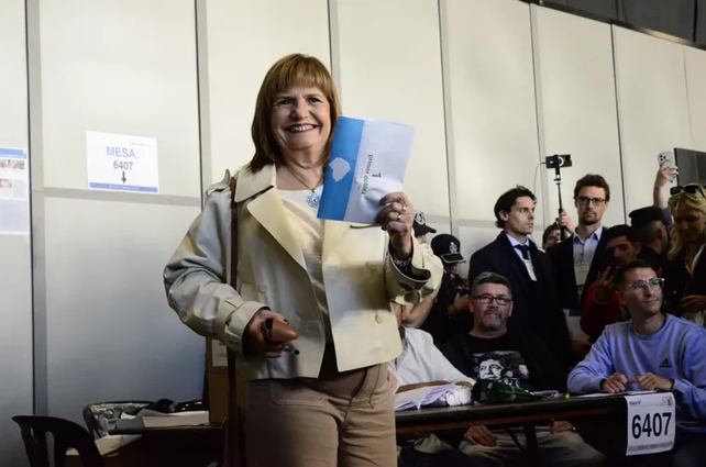 La ministra de Seguridad y primera candidata a senadora de La Libertad Avanza por la Ciudad de Buenos Aires, Patricia Bullrich, votó pasadas las 14 horas en el predio de la Sociedad Rural, en Palermo.