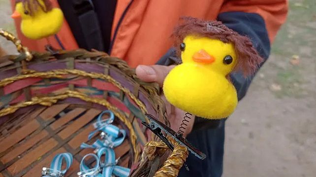 La moda empezó a popularizarse en las últimas semanas entre los más chicos. Se trata de usar patitos amarillos en la cabeza. Se usan patitos con lentes de sol, sombreros o pañuelos y luces, y ahora también hay con peluca, en referencia al pelo de Javier Milei. Se llevan en el pelo a través de una superficie resorte sobre el cual se sostiene el patito, lo que deja llamar la atención y se mueva.
