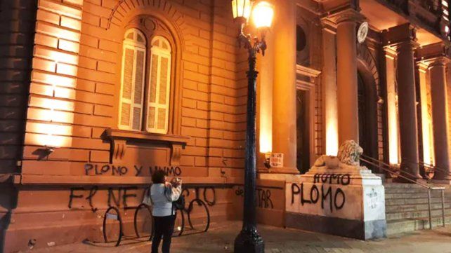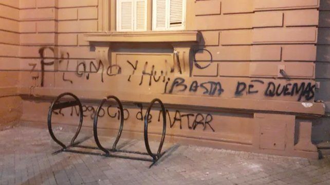 Quemas: aparecen pintadas en edificios públicos de Rosario