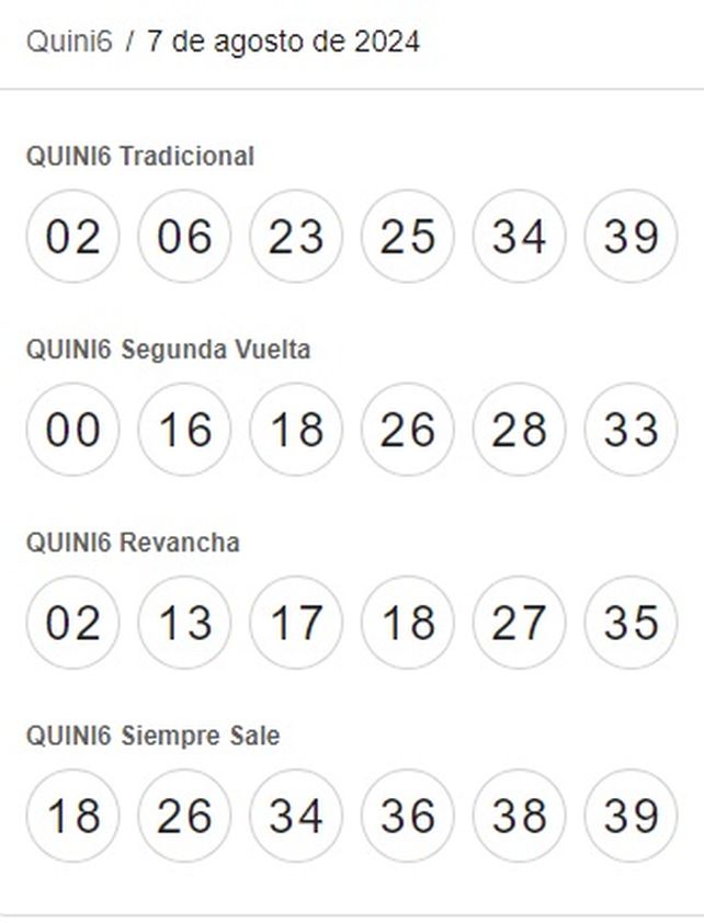 El miércoles 7 de agosto, en el día de su aniversario N°36, el Quini 6 realizó un nuevo sorteo en el que si bien varias personas se hicieron millonarias, los premios de las modalidades principales quedaron vacantes, por lo que el juego que pertenece a la Caja de Asistencia Social de Santa Fe sortea un megapozo histórico de $6.700 millones.