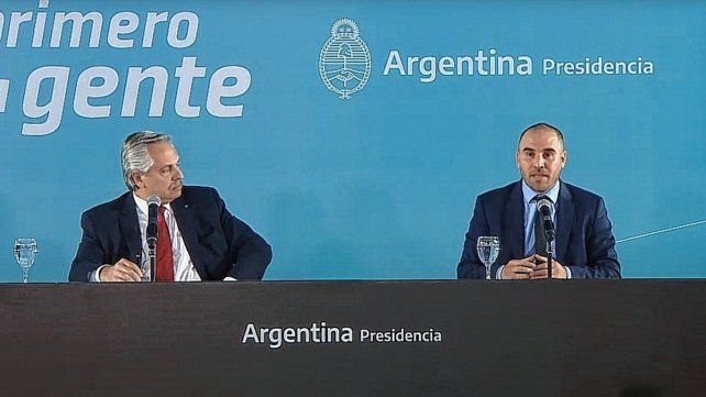 Impulso. El presidente y el ministro de Economía, presentaron la renta inesperada.