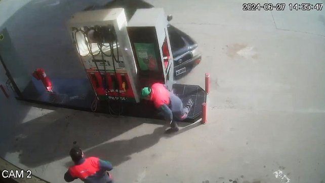 Por medio de los registros de la cámara de seguridad del lugar, la persecución y posterior accidente ocurrió pasadas las 14 horas del jueves. Sin embargo, el hecho comenzó minutos antes en otra estación de servicio situada en el cruce entre la Ruta 11 y Jorge Neme, es decir, a casi un kilómetro y medio de distancia.