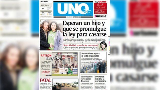 El 16 de julio de 2010, tras la sanción de la Ley, el Diario UNO publicó la historia de Claudia y Paola, dos jóvenes de Paraná que se unieron civilmente en enero de 2004 y nunca se separaron.