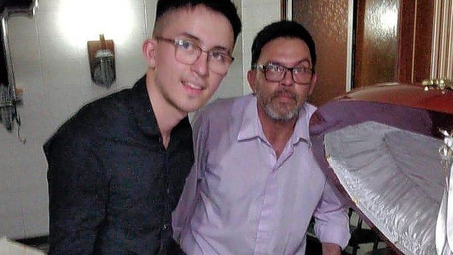 En las imágenes se pudo observar un hombre (Molina) de contextura robusta y pelado junto al cuerpo del "10", mientras que en la otra fotografía hay un hombre (Claudio) y un joven, ambos con anteojos, posando junto al cajón.