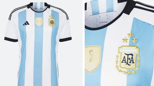La tercera estrella arriba de la insignia de la AFA y el escudo de “World Champions 2022″ (Campeones del Mundo 2022) de la FIFA en el pecho, hacen una enorme diferencia.