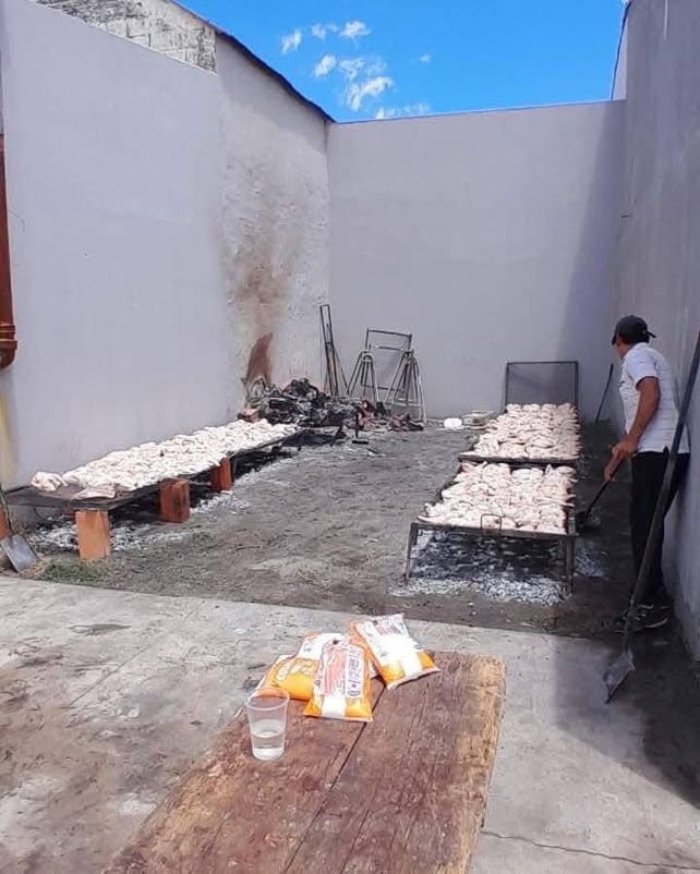 Con el dinero extra que recibió por su trabajo, Gonzalo compró pollos y fue más allá de una simple donación económica. En el Club Monumental se puso el delantal, encendió el fuego y asó personalmente, uno por uno, 200 pollos que luego fueron destinados a familias que atravesaban un momento difícil.