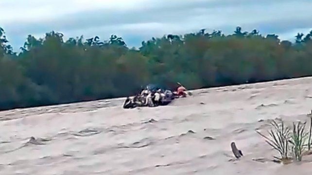 El cauce del río Bermejo se encuentra particularmente crecido por las intensas lluvias registradas en la zona, lo que provocó que la fuerte correntada dificultara el trabajo de quienes estaban a cargo de la precaria embarcación.