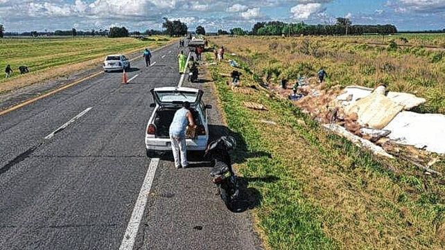 El despiste del vehículo marca Volvo se produjo en circunstancias que son materia de investigación, y el acoplado quedó destruido, aunque su conductor salió ileso. En ese momento, rápidamente decenas de vehículos particulares se detuvieron en el lugar y sus ocupantes descendieron para llevarse la mercadería.