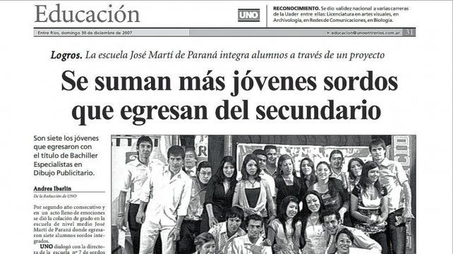 En 2004, se puso en marcha el proyecto donde alumnos sordos y oyentes compartían el espacio áulico y cursaron el 1° año del Bachillerato Acelerado para Adultos en la Escuela José Martí. Algunos de los estudiantes sordos viajaban de otras localidades a Paraná para asistir.