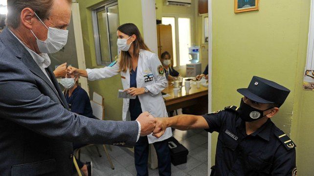 En la institución policial se aplicaron este viernes dosis de la vacuna Sinopharm a personal de las fuerzas de seguridad. “El lunes continuará la vacunación con el personal de la División 911, bomberos y así sucesivamente con el resto del personal, y también coordinando con el interior de la provincia", detalló Bordet.