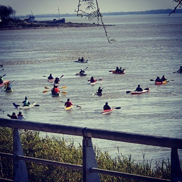Al mismo tiempo, cerca de las 11 la Multisectorial por los Humedales, convocó a la plaza de Las Colectividades para acompañar desde la costa a los que salieron a remar.
