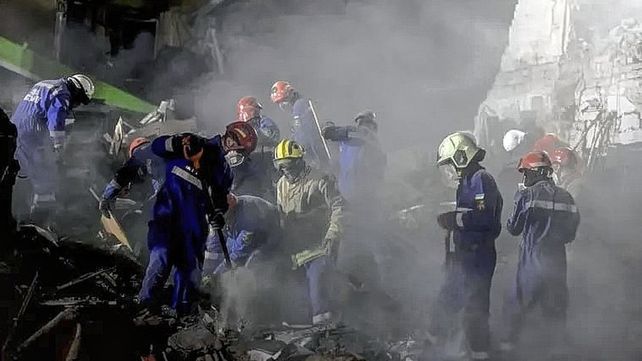 “Edificios residenciales quedaron dañados. Está en marcha la búsqueda de personas bajo los escombros”, dijeron los servicios de emergencia ucranianos.