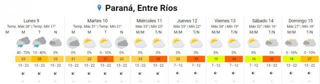Se prevén altas temperaturas para Paraná y otras zonas de la provincia.