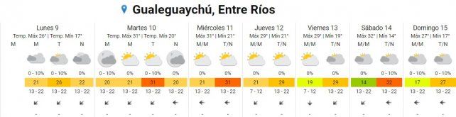 Por otro lado, en Concepción del Uruguay hoy estará mayormente nublado con una máxima de 26° pero para los días subsiguientes también se anuncian jornadas calurosas con máximas de entre 29° y 31°.