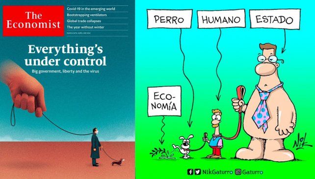 En el dibujo original se intenta criticar al control que tiene el Estado sobre las personas, haciendo una comparación con el control que tienen los humanos sobre los perros. Nik aprovechó esta idea y la usó para ejemplificar cómo el Estado y la cuarentena están arruinando la economía argentina.