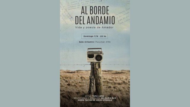 Después de tres años de girar por distintos puntos del país, regresa a Paraná la obra unipersonal Al borde del andamio. Vida y poesía de Amador, basada en textos del poeta Jorge Spíndola. La función será el domingo 7 de septiembre a las 20 en ARTEATRO (Tucumán 378), con entrada general de $8.000 y reservas al 3435336779.