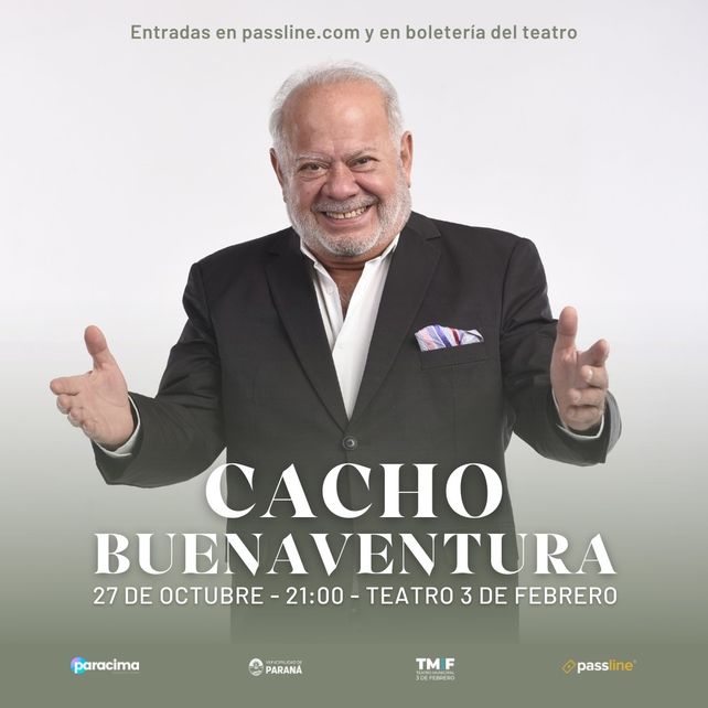 Cacho Buenaventura, uno de los humoristas más prestigiosos del país, llega a Paraná, el viernes 27 de octubre a las 21, en el Teatro 3 de Febrero, 25 de Junio 54.