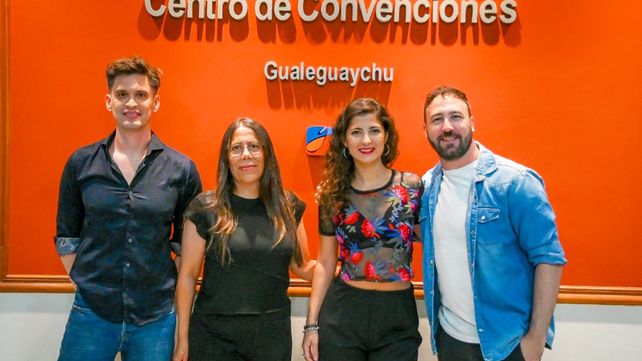 Ezequiel Procopio, Mercedes Nastri, Matías Otalora, Virginia Ojeda, los jurados de la tercera noche de El Carnavla del País 2025, en Gualeguaychú.