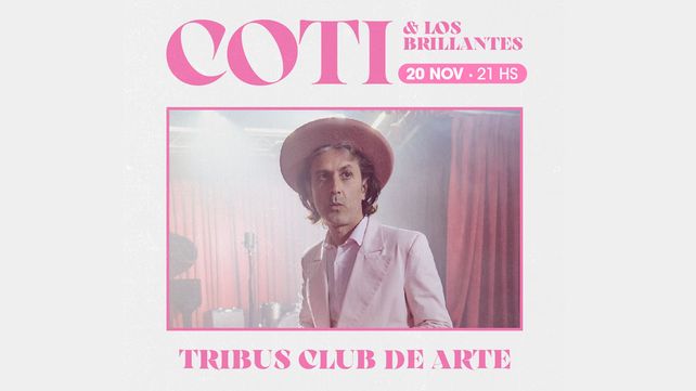 Luego de la pandemia, Coti volvió a los escenarios con más fuerza que nunca. El creador de hits inolvidables como "Nada fue un error" y "Bailemos", entre otros, retoma su gira por Argentina, Europa y gran parte de Latinoamérica, junto a su banda, Los Brillantes. Este tour los traerá el domingo 20 de noviembre a las 21 a Tribus Club de Arte. En estos momentos Coti está terminando su próximo disco, que verá la luz en 2023.