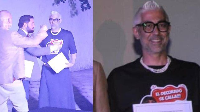 "El decorado se calla", la icónica frase de Moria Casán, estaba inscripta en la remera negra que lució Fernando Kosiak en el acto que se desarrolló en el Museo de Bellas Artes Pedro E. Martínez donde ocurrió la inauguración de la exposición y entrega de distinciones en el marco del 62º Salón de Artes Visuales de Entre Ríos.