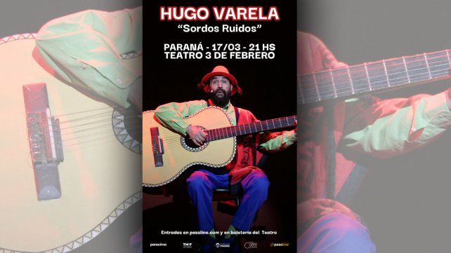 Hugo Varela, reconocido humorista y luthier, presentará en Paraná su espectáculo Sordos Ruidos, el domingo 17 de marzo a las 21 en el Teatro 3 de Febrero (25 de Junio 54).