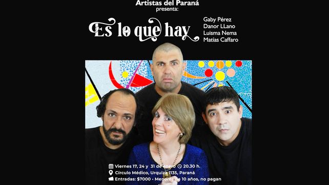 El Círculo Médico inaugura su Programa Cultural 2025 “Artistas del Paraná” con una propuesta que promete risas y entretenimiento para toda la familia. La comedia "Es lo que hay" se presentará los viernes 17, 24 y 31 de enero, a las 20:30, en el salón Auditorio del Círculo, Urquiza 1135. La obra cuenta con un elenco de lujo compuesto por Gaby Pérez, Danor Llano, Luisma Nema y Matías Caffaro.