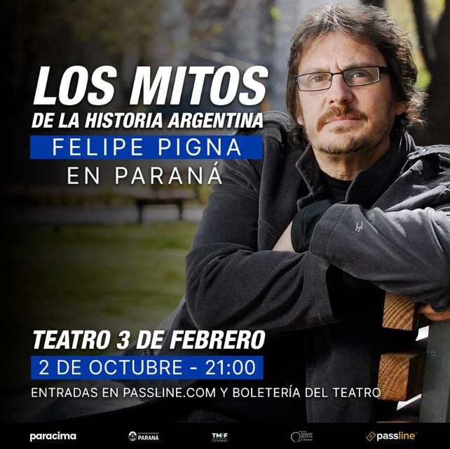 Llega Felipe Pigna al Teatro 3 de Febrero de Paraná. En esta charla, el historiador más popular del país propone un recorrido por momentos y personajes cruciales de la historia argentina. Figuras que impulsaron cambios culturales, políticos, económicos y sociales previos al siglo XX, enfocándose en las relaciones de poder que se han tejido a lo largo de los años, como si estuviera tirando de los hilos de una maraña histórica que llega hasta el presente.